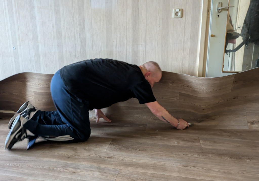 We kwamen bij Bart op huisbezoek. Hij had het niet zo op hulpverleners en is het liefst op zichzelf. Met zijn 5 katten. Tenminste, dat dacht hij, want we kwamen erachter dat er 9 katten door het huis liepen. Op de vloer lag al 12 jaar ondertapijt van dun vilt, verder niets. Niet goed schoon te maken en zeker niet als je ook nog eens huisdieren hebt. Dat kon je zien én ook goed ruiken. De geur was ook in het beton van het appartement getrokken. Dit was geen gezonde situatie voor zowel Bart als de katten. Zelf rook Bart het niet meer maar de buren begonnen te klagen en dat had hem aan het denken gezet. Met behulp van het Sociaal Team Sliedrecht zette hij de moedige stap om toch hulp toe te laten en dus mochten we langskomen. Want met een kwetsbare gezondheid, geen netwerk en geen financiële middelen kon hij het zelf niet voor elkaar krijgen.